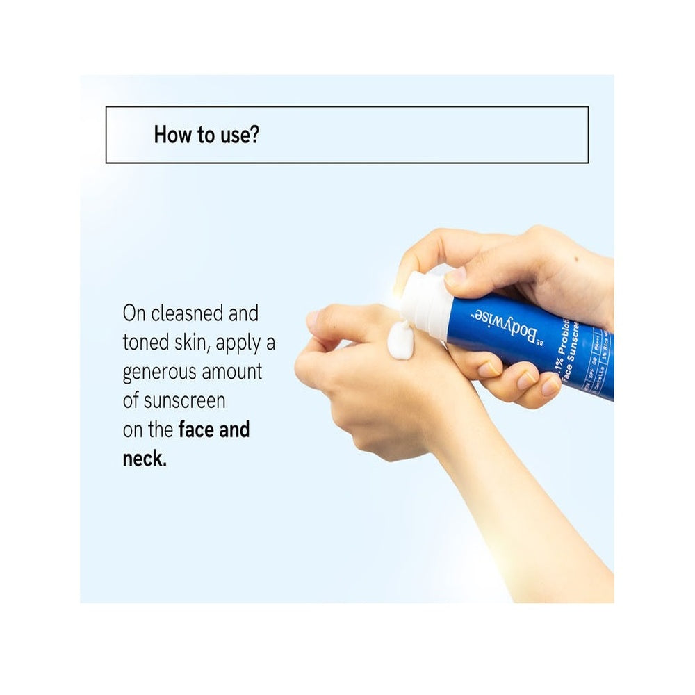 Be Bodywise 0.1% Probiotic Face Sunscreen with SPF 50 offers advanced sun protection while nurturing your skin's natural barrier. Formulated with a gentle 0.1% probiotic complex, it supports healthy skin microbiome balance, reducing sensitivity and promoting resilience against environmental stressors. The high SPF 50 shields your skin effectively from harmful UVA and UVB rays, preventing premature aging and sun damage. Lightweight and non-greasy, this sunscreen is ideal for daily use, delivering superior protection without clogging pores or causing irritation. Perfect for sensitive skin types seeking expert care and reliable sun defense.