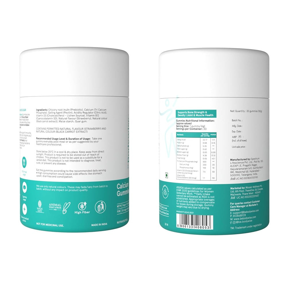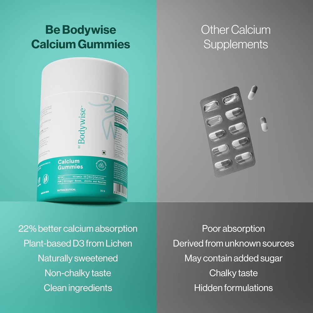 Bodywise 100% Vegan Calcium Gummies provide a plant-based source of calcium designed to support bone health without any added sugar. These gummies offer a convenient and delicious way to meet your daily calcium needs, suitable for those following a vegan lifestyle or seeking a sugar-free supplement. Crafted to promote strong bones and overall wellness, they combine effective supplementation with clean, conscious ingredients.