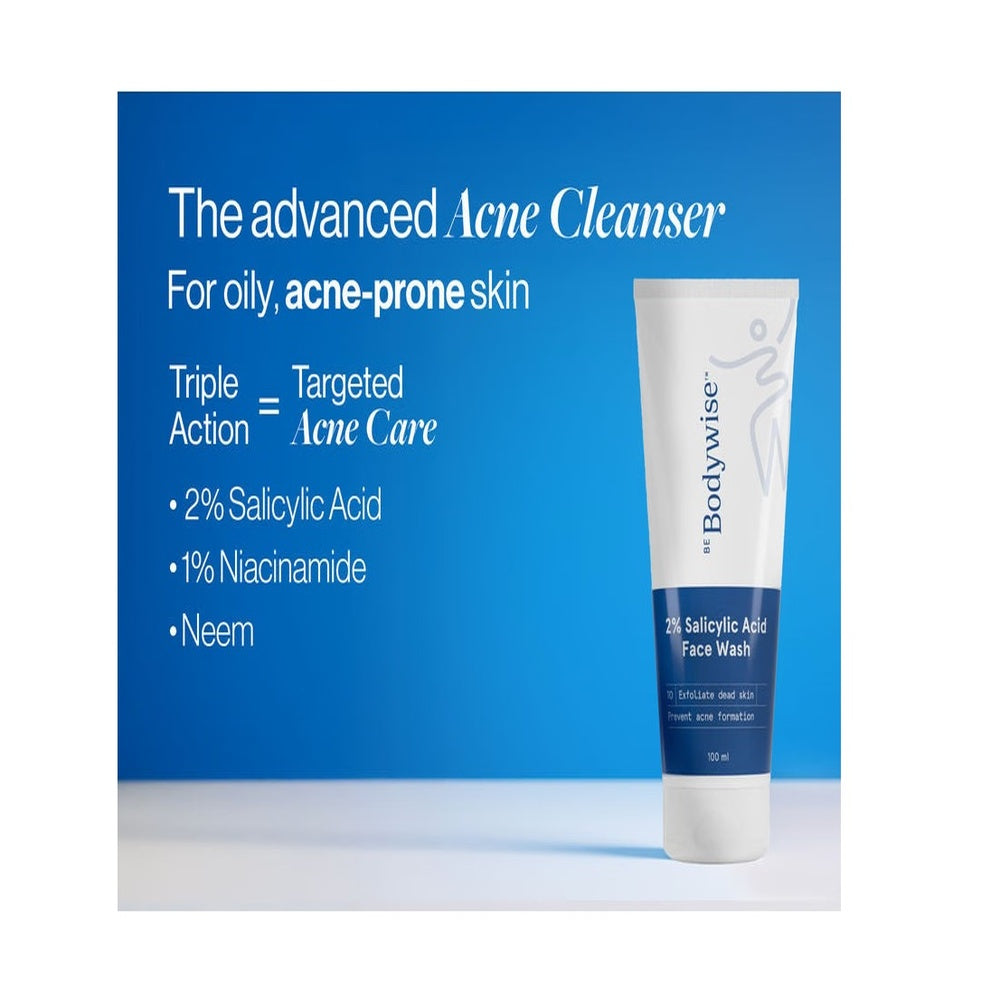 Be Bodywise 2% Salicylic Acid Face Wash is expertly formulated to deeply cleanse and exfoliate your skin. Containing 2% salicylic acid, it helps unclog pores and reduce acne, preventing future breakouts. This gentle yet effective face wash also removes excess oil and impurities, promoting a clearer, smoother complexion. Suitable for regular use, it supports healthier skin by minimizing blackheads and improving overall texture without causing dryness. Ideal for acne-prone and oily skin types seeking a professional-grade cleansing solution.