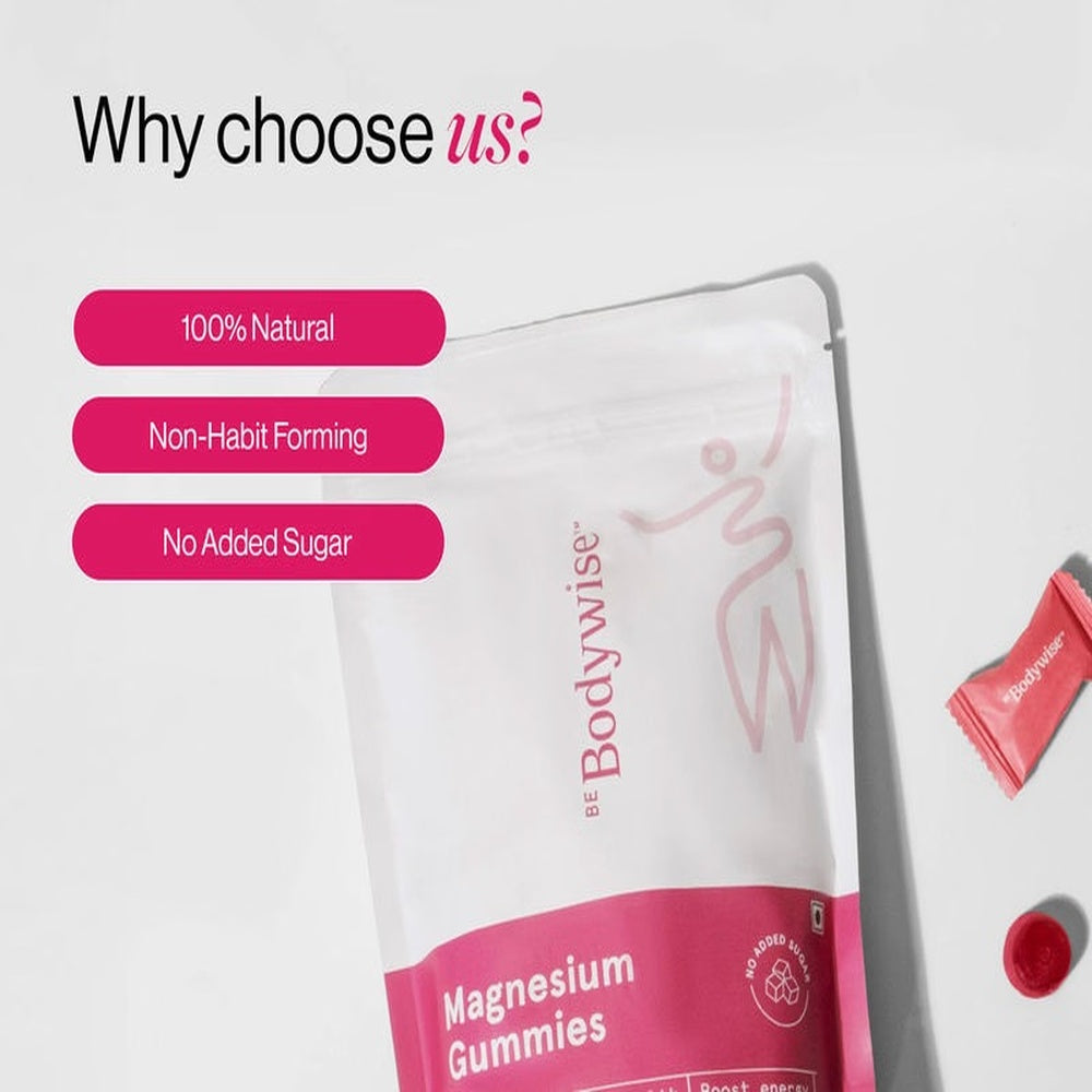 Be Bodywise Advanced Magnesium Gummies provide a convenient and effective way to support your daily magnesium intake. Each gummy delivers a precise dose of magnesium to help maintain healthy muscle and nerve function, promote relaxation, and support energy production. With a delicious taste and easy-to-chew texture, these gummies offer expert-formulated supplementation that fits seamlessly into your wellness routine. Ideal for those seeking to prevent magnesium deficiency and enhance overall vitality.