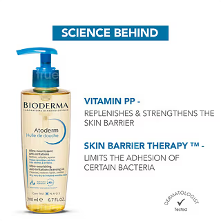 Bioderma Atoderm Huile de douche Cleansing Oil is designed to gently cleanse the skin while providing 24-hour hydration. Its nourishing formula restores comfort immediately, making it ideal for sensitive and dry skin. Suitable for daily use, this 200 ml cleansing oil leaves the skin soft, soothed, and protected right from the shower.
