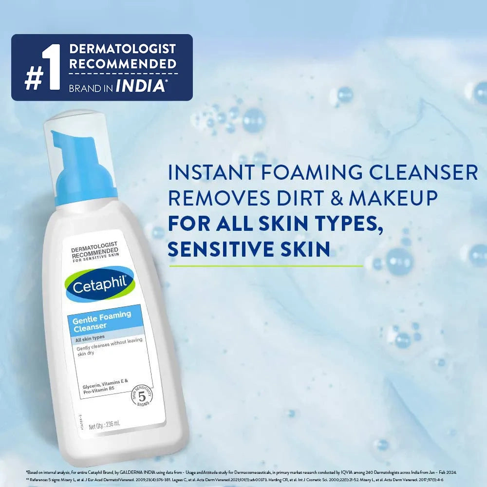 Cetaphil Gentle Foaming Cleanser (236 ml) offers a mild yet effective facial cleansing solution suitable for all skin types. Its gentle foam formulation removes dirt, oil, and impurities without disrupting the skin’s natural moisture balance, helping maintain a healthy and comfortable complexion. Designed for daily use, it supports skin barrier integrity while leaving skin feeling refreshed and clean. Ideal for sensitive skin, this cleanser provides expert care by combining efficacy with a soothing, non-irritating formula.