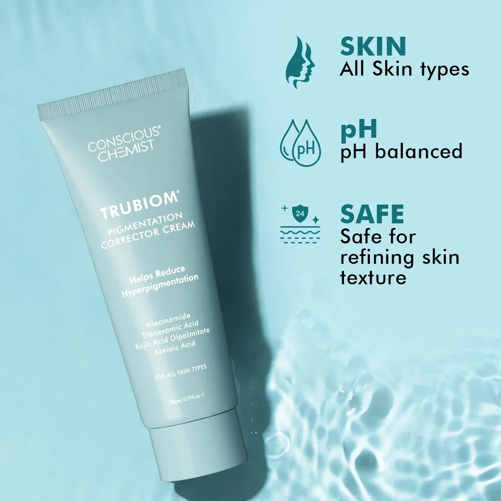 Conscious Chemist Pigmentation Corrector Moisturiser is expertly formulated to target dark spots, uneven skin tone, and pigmentation. This lightweight moisturizer helps brighten the complexion while providing balanced hydration, promoting a more even and radiant appearance over time. Ideal for those seeking a professional solution to pigmentation concerns, it supports skin clarity without irritation.