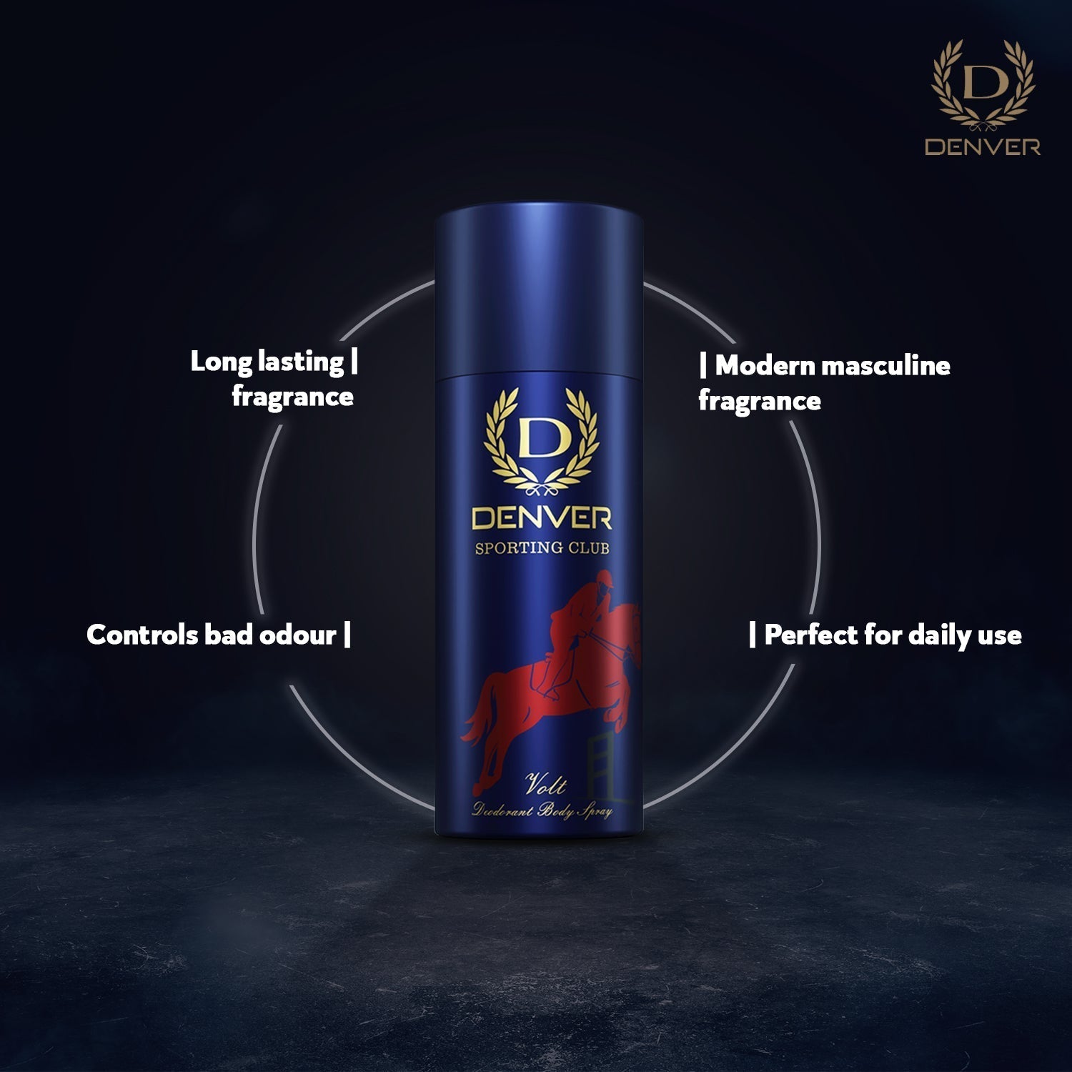 Deodorant which is a personal care product used to prevent body odour. Deodorants are available in various forms such as sprays, roll-ons, sticks etc. Men's deodorants are specifically formulated to address the body odor concerns of men, who typically sweat more than men. Some deodorants may be designed to provide a long-lasting protection against sweat and odor. DENVER deodorant body spray for men with a carefully blended fragrance mix and long lasting deo protection against body odours, to keep you delightfully fresh and confident throughout the day.