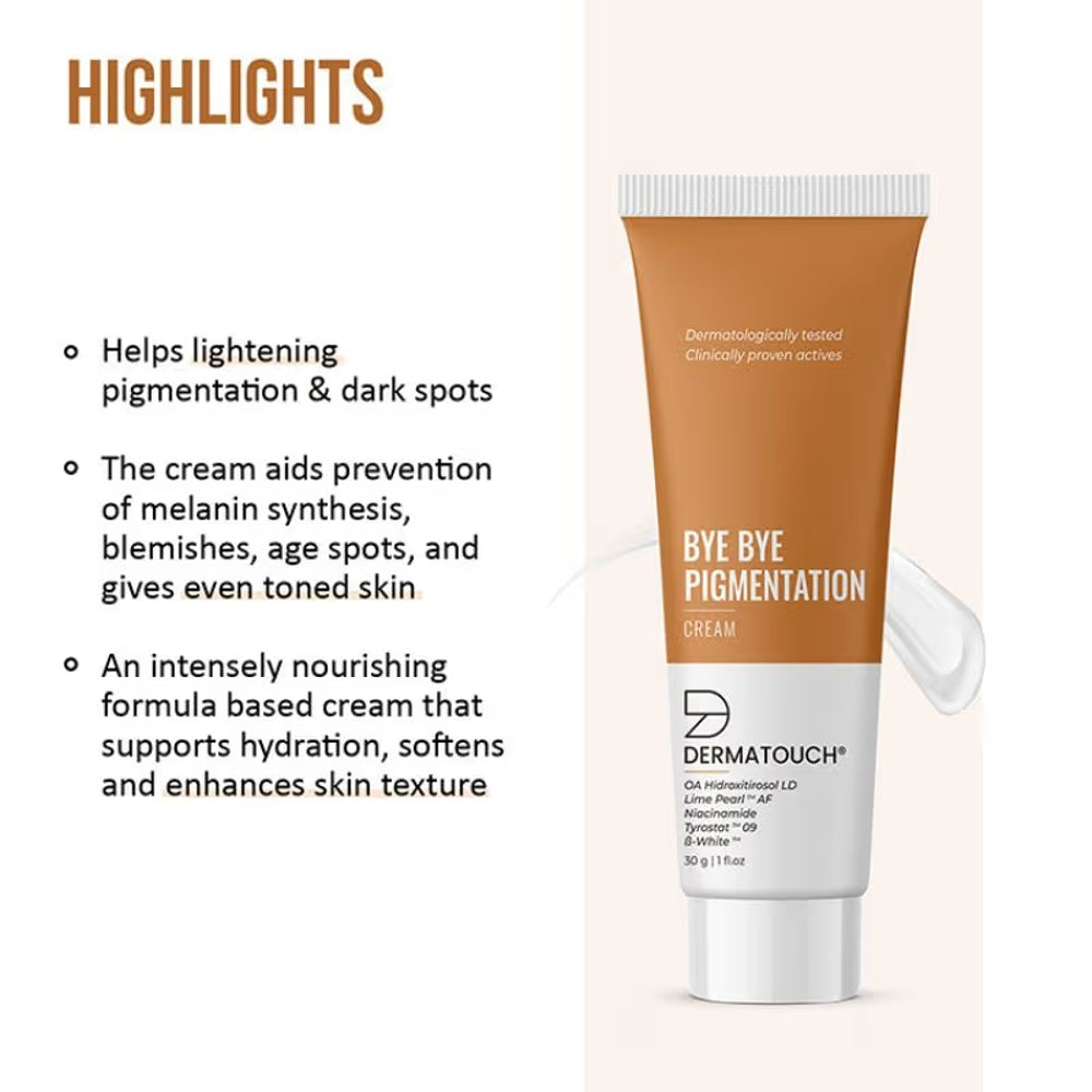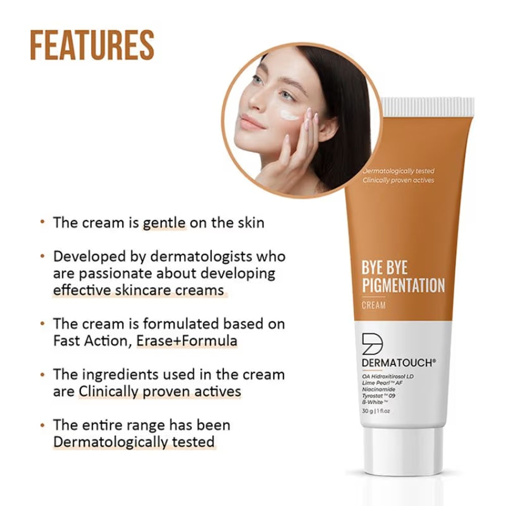 Derma Touch Bye Bye Pigmentation Cream is expertly formulated to target uneven skin tone and reduce the appearance of pigmentation. Its advanced ingredients work to brighten the complexion while promoting a clearer, more uniform skin surface. Ideal for those seeking an effective solution for pigmentation concerns, this cream helps restore skin radiance and supports a smoother, healthier looking complexion.