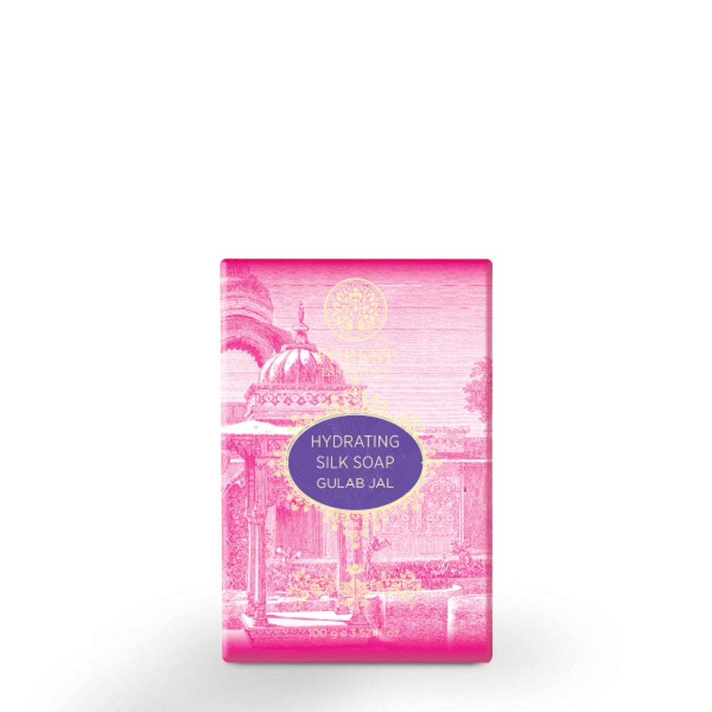 Forest Essentials Hydrating Gulab Jal Silk Soap (100g) offers a hydrating cleanse enriched with pure rose water (Gulab Jal) known for its soothing and moisturizing properties. This soap gently cleanses while enhancing skin’s natural glow and softness. Its silk-like texture leaves the skin feeling refreshed, nourished, and delicately fragranced, suitable for those seeking gentle hydration in their daily skincare.