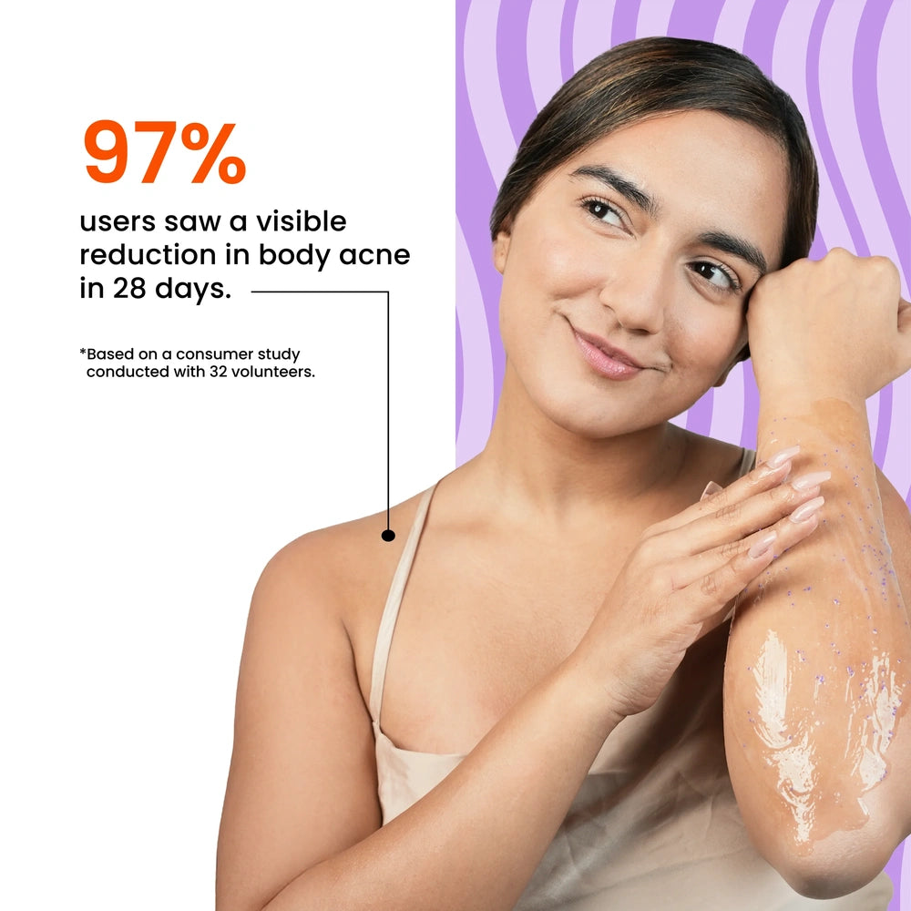 Foxtale Exfoliating Body Wash combines 2% Salicylic Acid with Zinc PCA to effectively reduce body acne while smoothing and clarifying the skin. This gentle yet powerful formula exfoliates dead skin cells, unclogs pores, and controls excess oil, promoting a clearer and healthier complexion. Ideal for those seeking targeted care against blemishes, it helps maintain balanced skin without over-drying.