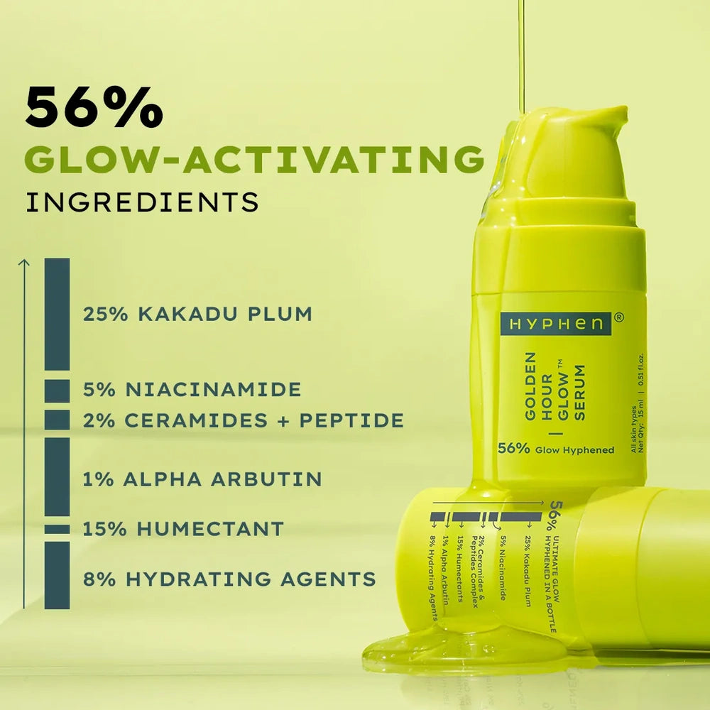This Hyphen Brightening Face Serum combines 5% Niacinamide and 1% Alpha Arbutin to effectively target dark spots and uneven skin tone. Enriched with 25% Vitamin C-rich Kakadu Plum, it delivers potent antioxidant benefits to enhance skin radiance. With a total of 56% glow actives, this 15ml serum supports brighter, clearer, and more glowing skin when used consistently. Ideal for those seeking expert-level results in skin brightening and spot correction.
