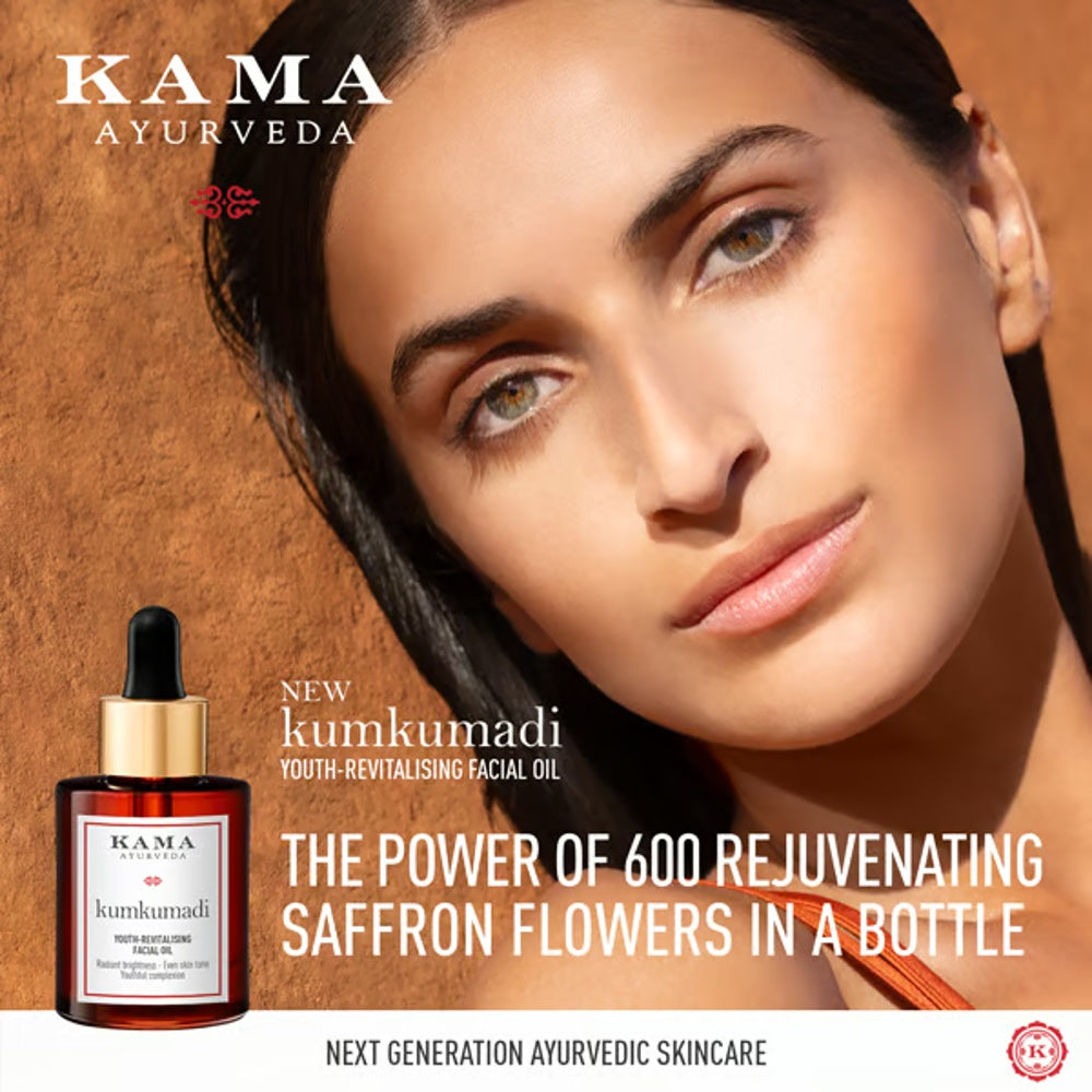 Kama Ayurveda Kumkumadi Youth-Revitalising Facial Oil blends traditional Ayurvedic wisdom with potent ingredients to brighten and rejuvenate the skin. This lightweight oil helps diminish the appearance of scars, pigmentation, and dark spots, promoting a radiant and youthful complexion. Formulated with pure saffron and other natural extracts, it supports skin hydration and improves texture, making it ideal for skin renewal and anti-aging care. Regular use enhances skin clarity, vitality, and glow while maintaining balance without clogging pores.