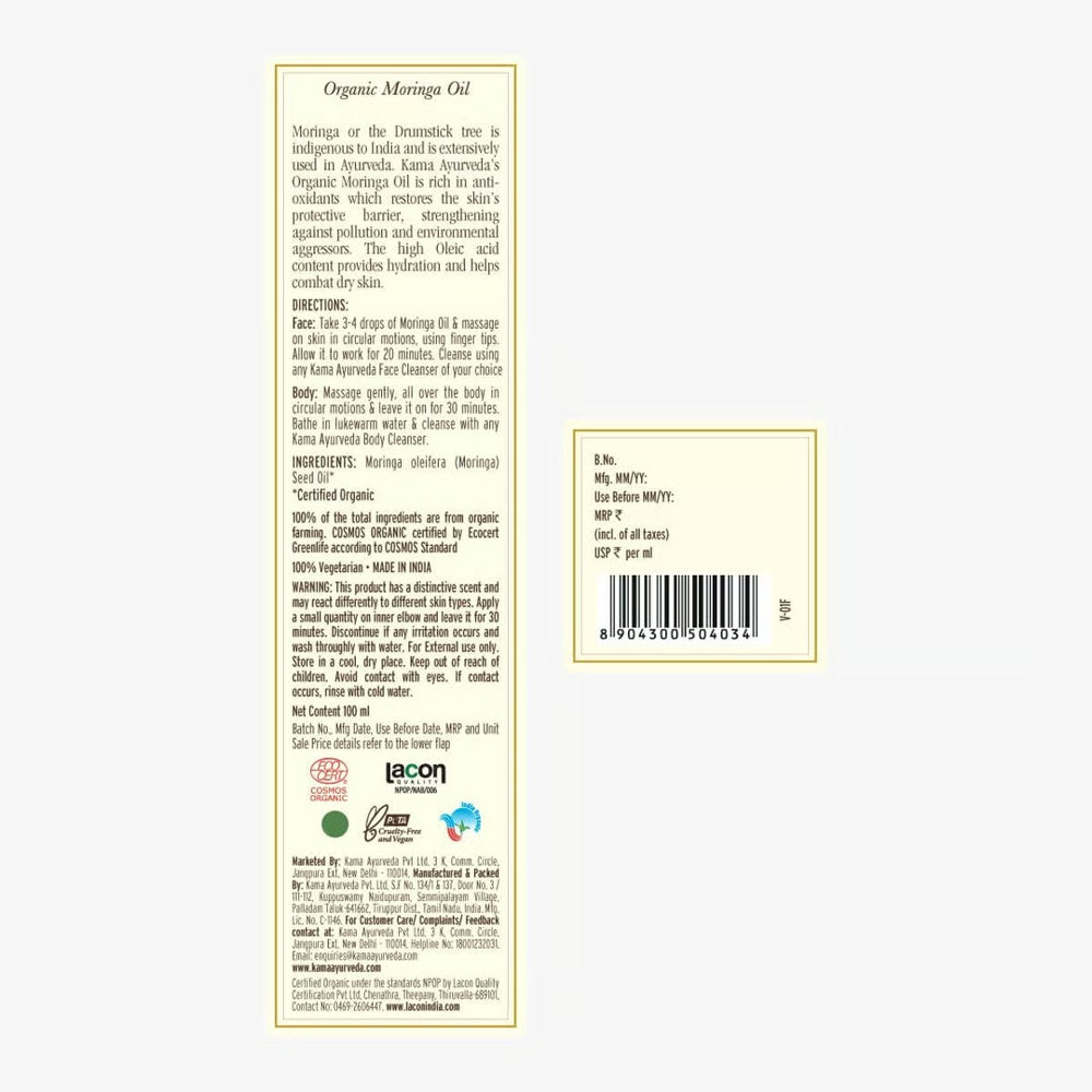Kama Ayurveda Organic Moringa Oil (100ml) is a pure, cold-pressed oil renowned for its nourishing properties. Rich in antioxidants and essential fatty acids, it deeply hydrates and revitalizes skin, promoting a natural glow. Its lightweight texture absorbs quickly, making it ideal for daily skincare or soothing dry, irritated areas. Expertly crafted using organic moringa seeds, this oil supports skin health while maintaining a gentle, non-greasy feel. Perfect for enhancing your beauty routine with natural, effective care.