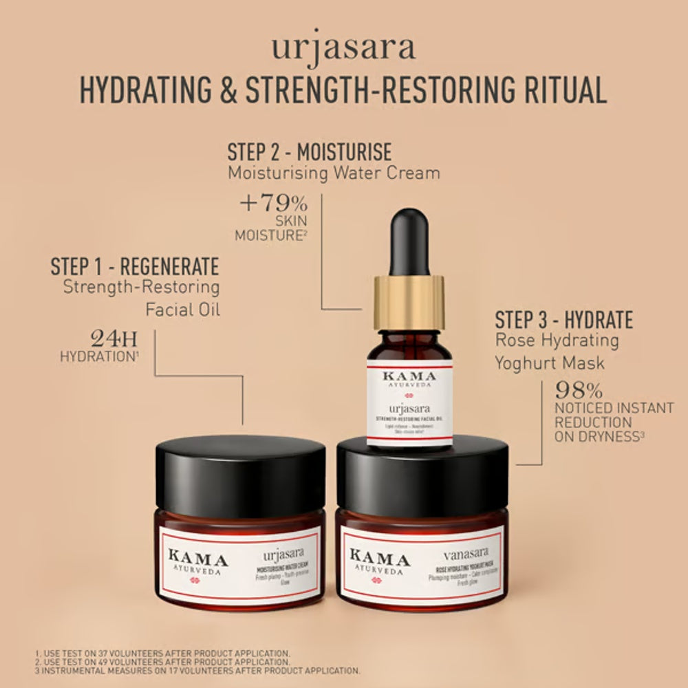 The Kama Ayurveda Urjasara Moisturising and Youth Preserving Essentials Discovery Set offers a curated collection of natural skincare essentials designed to hydrate deeply and maintain youthful skin. Formulated with traditional Ayurvedic ingredients, this set nourishes and revitalizes, promoting a radiant, balanced complexion. Ideal for those seeking expert-guided daily care, it supports skin’s moisture barrier and helps reduce signs of aging with gentle, effective formulations. Perfect to explore or travel with, this discovery set provides a holistic approach to skincare rooted in time-tested wellness principles.