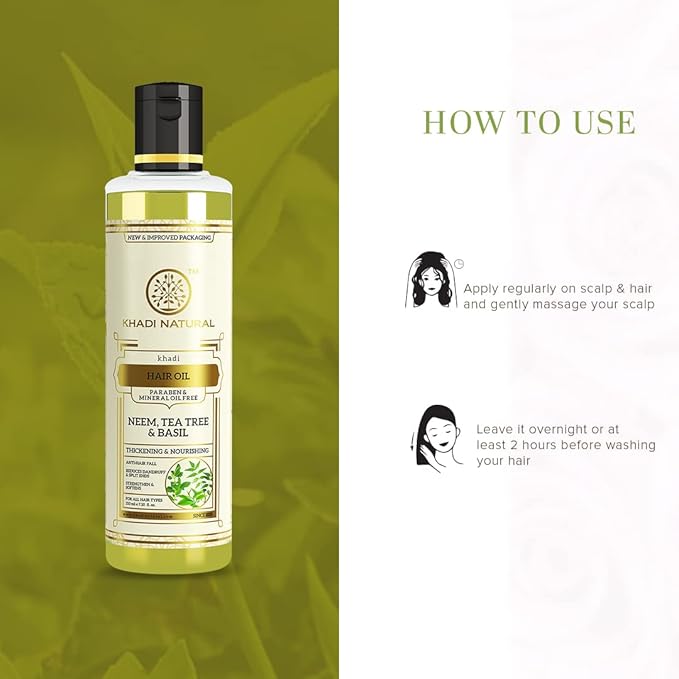 • Enriched with neem, tea tree, and basil, this hair oil promotes hair growth and improves overall hair health for stronger, more vibrant hair.