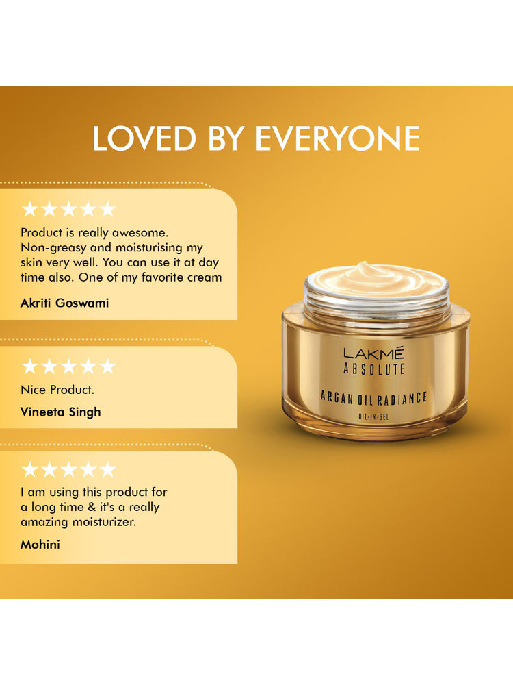 Discover the benefits of Lakme Absolute Argan Oil Radiance Oil-In-Gel Face Cream (50 g), designed to enhance your daily beauty routine with targeted performance and trusted Lakme quality.