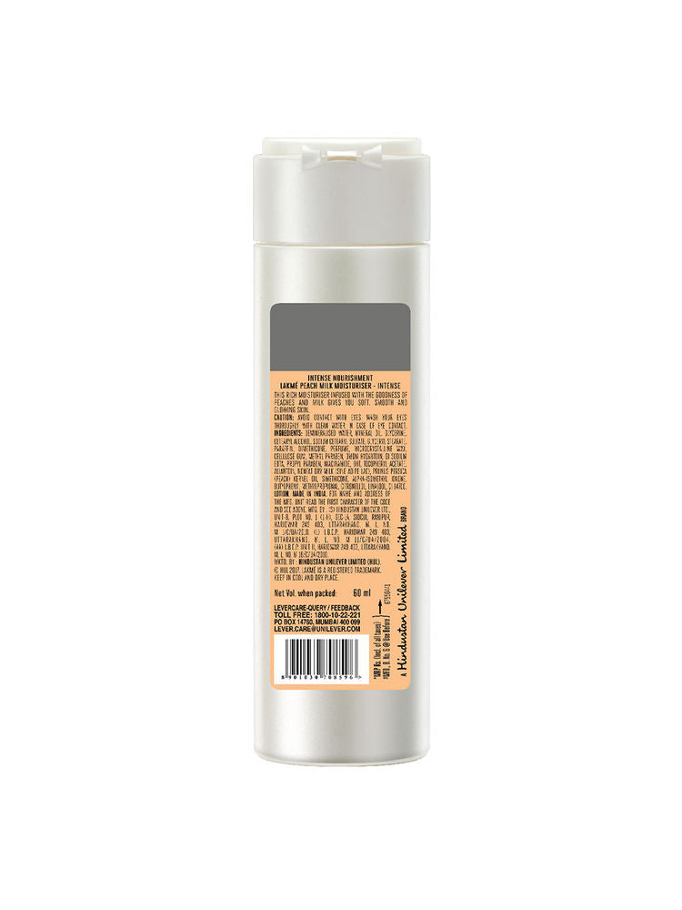 Discover the benefits of Lakme Peach Milk Intense Moisturizer Lotion (60 ml), designed to enhance your daily beauty routine with targeted performance and trusted Lakme quality.