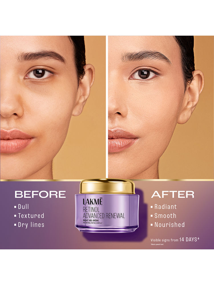 Discover the benefits of Lakme Retinol Advanced Renewal Night Gel Creme Pro-Retinol Peptide Complex (50 g), designed to enhance your daily beauty routine with targeted performance and trusted Lakme quality.