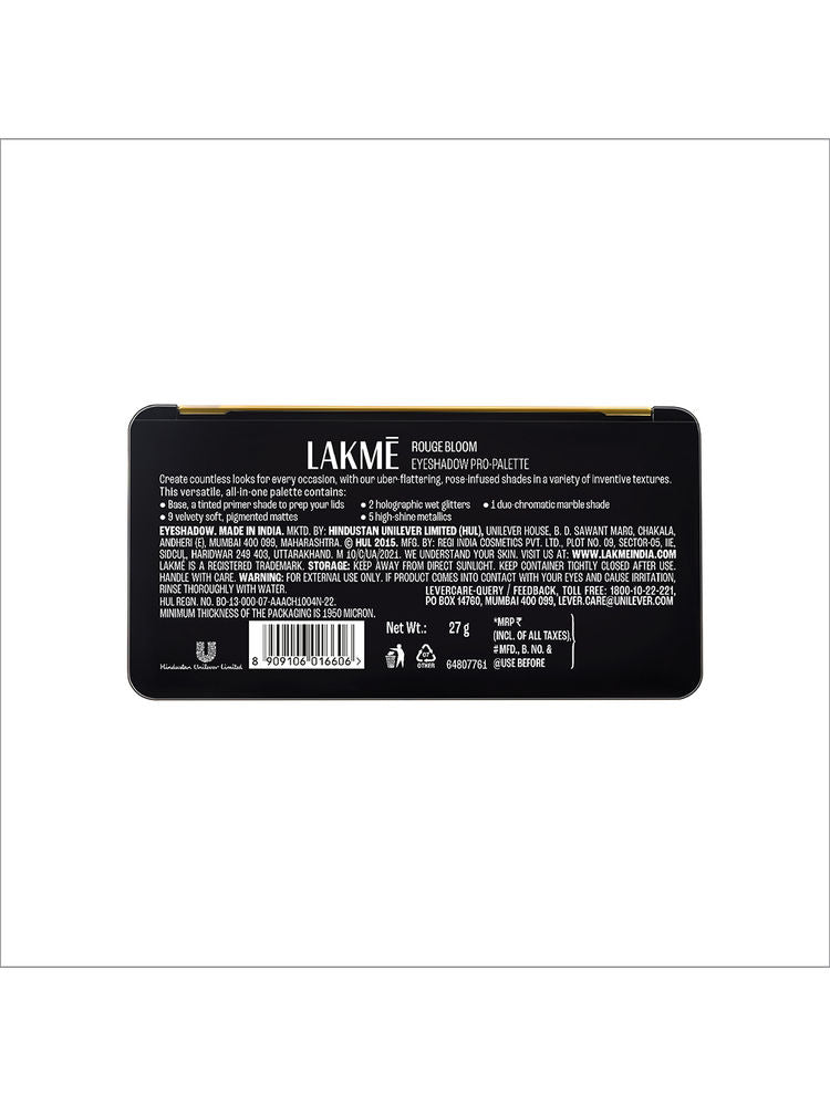 Discover the benefits of Lakme Rouge Bloom Eyeshadow Pro-Palette (27 g), designed to enhance your daily beauty routine with targeted performance and trusted Lakme quality.