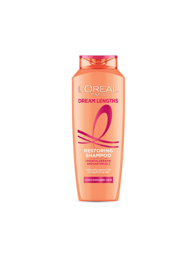 L'Oreal Paris Dream Lengths Restoring Shampoo is specially designed for long, damaged hair. Enriched with Keratin and Castor Oil, it strengthens hair to reduce breakage and split ends while keeping hair smooth, shiny, and nourished.