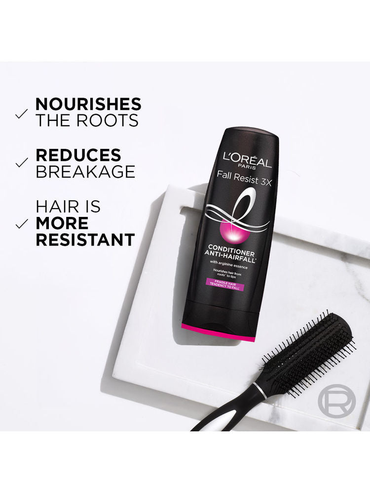L'Oreal Paris Fall Resist 3x Conditioner is specially formulated for fragile hair prone to breakage. Enriched with Arginine, it nourishes from root to tip, reinforcing hair structure and reducing hair fall due to breakage.