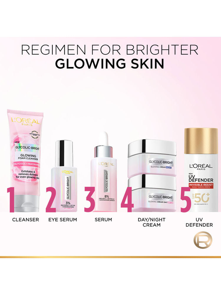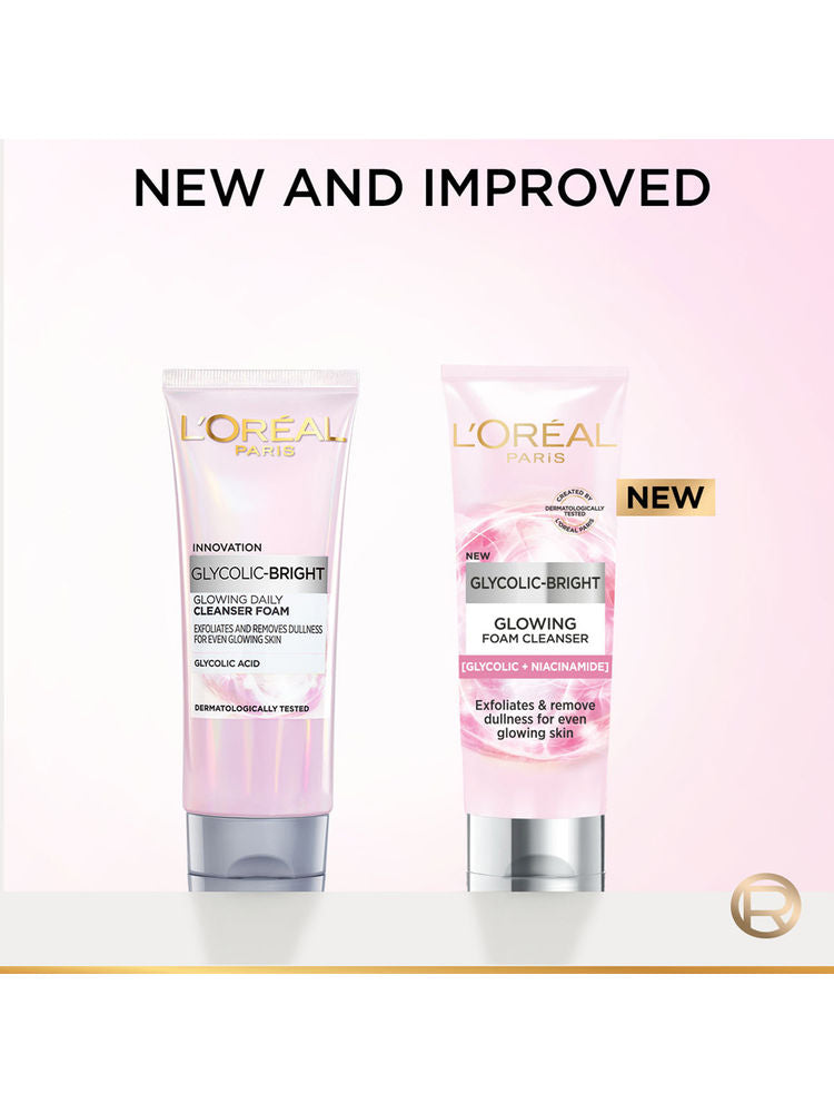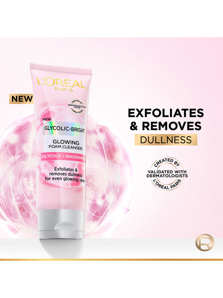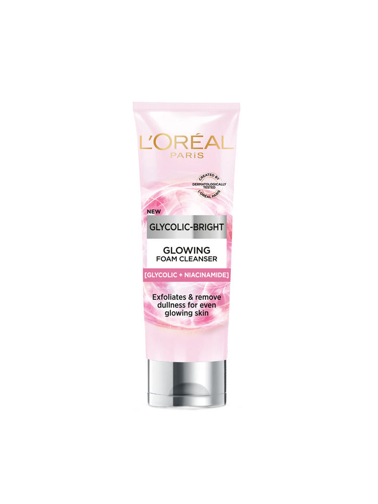 L'Oreal Paris Glycolic Bright Daily Foaming Cleanser deeply cleanses and gently exfoliates dull skin with the power of Glycolic Acid. It removes impurities and dead skin cells to reveal brighter, smoother, and glowing skin after every wash.