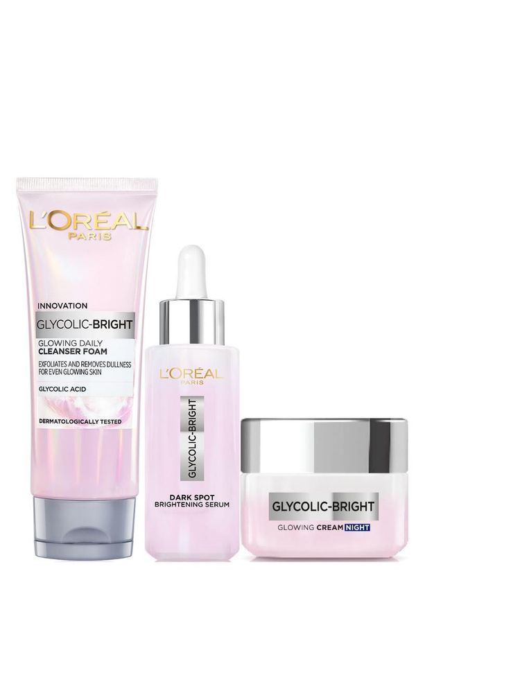 L'Oreal Paris Glycolic Bright Night Regime is a 3-step skincare kit designed for nighttime use. Enriched with glycolic acid, it exfoliates, refines, and deeply nourishes skin overnight, leaving you with a radiant, even-toned glow by morning.