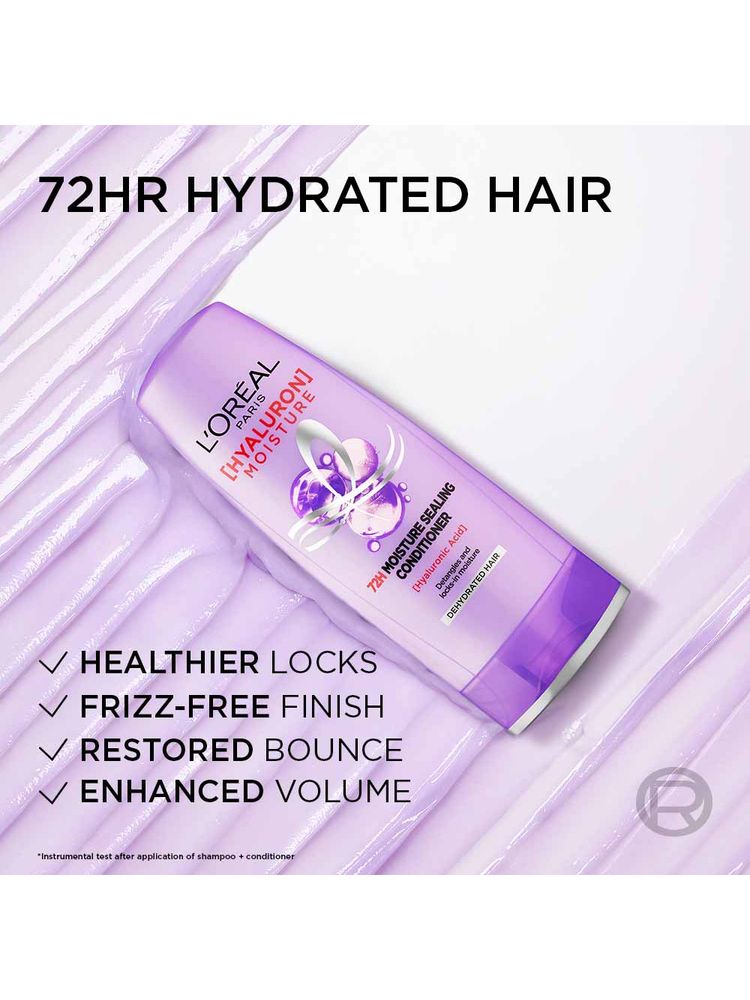 L'Oreal Paris Hyaluron Moisture Combo includes a hydrating shampoo and conditioner enriched with Hyaluronic Acid to provide intense moisture for up to 72 hours. Designed for dry, lifeless hair, this combo deeply nourishes each strand, making it soft, smooth, and shiny. Enjoy salon-like results at home with this advanced hair hydration solution.