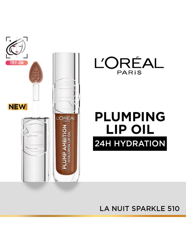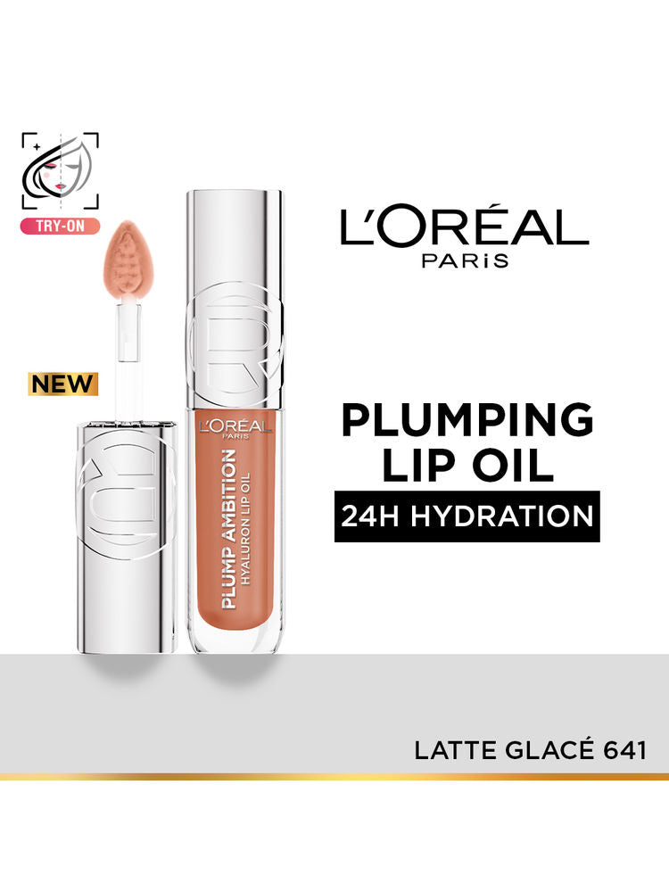 Get visibly fuller, shinier lips with the L'Oreal Paris Plump Ambition Hyaluron Lip Oil. Infused with hyaluronic acid, this nourishing lip oil hydrates and plumps the lips for a smooth, juicy finish. The lightweight, non-sticky texture glides on effortlessly, delivering a mirror-like shine and a hint of tint. Perfect for everyday wear or layering over lipstick, it visibly softens and conditions lips while enhancing natural volume. Available in flattering shades, this lip oil is your secret weapon for luscious, hydrated lips with a glossy, high-shine look.