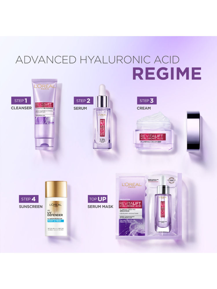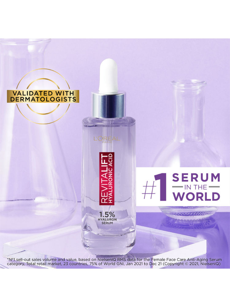 L'Oreal Paris Revitalift 1.5% Hyaluronic Acid Serum is now available in a value pack of two for intense and lasting hydration. This fast-absorbing serum deeply hydrates, plumps skin, and smoothens fine lines, making your skin supple and radiant.