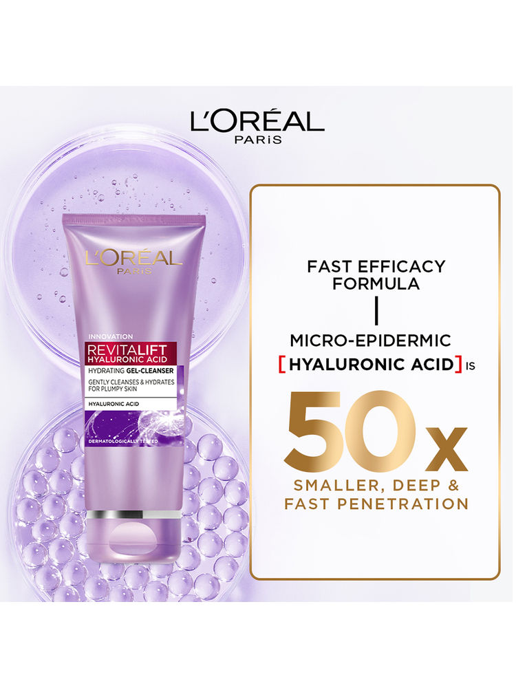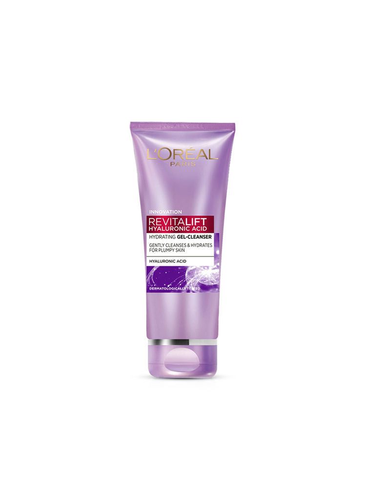 L'Oreal Paris Revitalift Gel Cleanser with Hyaluronic Acid deeply cleanses the skin while locking in moisture. It removes dirt, oil, and makeup without stripping the skin, prepping it for better absorption of serums and creams.