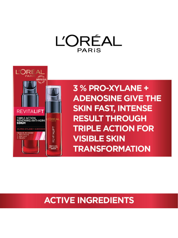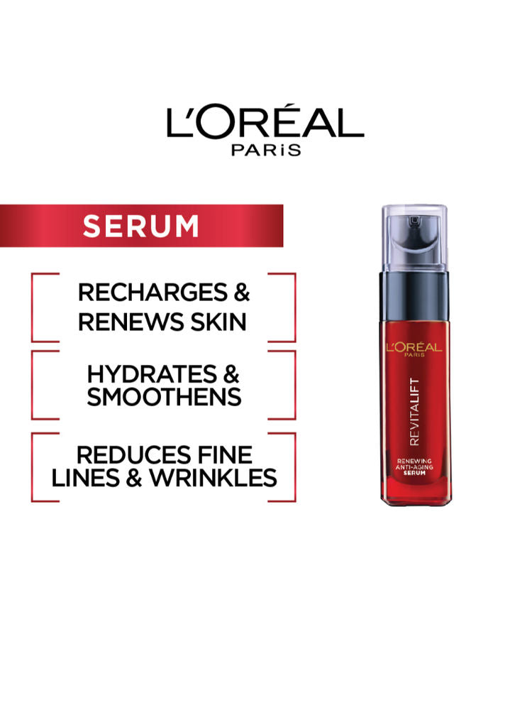 L'Oreal Paris Revitalift Intensive Repairing Essence is a potent anti-aging formula enriched with Pro Retinol-A to visibly reduce wrinkles and refine skin texture. This lightweight essence penetrates deeply to renew skin from within for a youthful, glowing complexion.