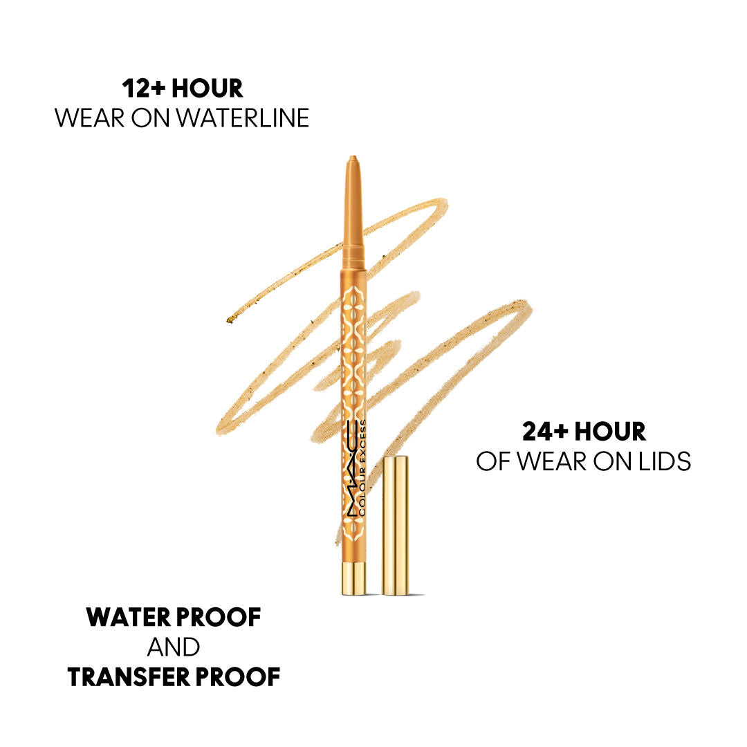 Add a bold festive flick with M.A.C Colour Excess Gel Liner – Spark Gold. This limited-edition gel pencil from the Embroidered Opulence Collection glides on effortlessly, delivering intense golden shimmer with up to 24-hour wear. Smudge-resistant and waterproof for long-lasting holiday glam. A festive gold liner that defines your eyes with brilliance and endurance.
