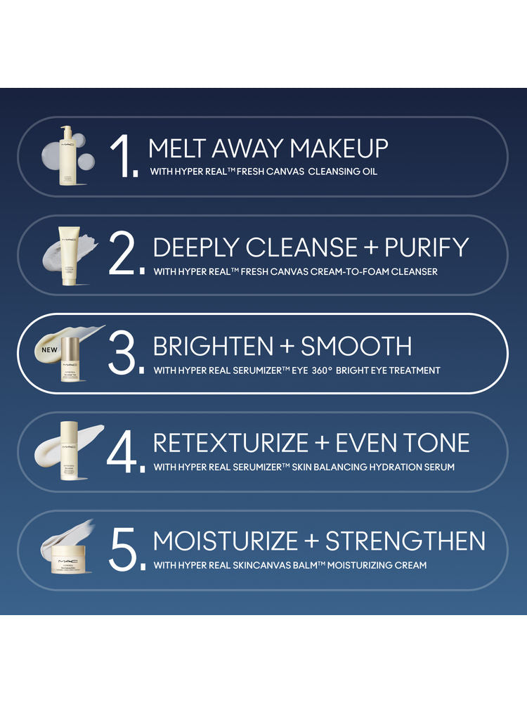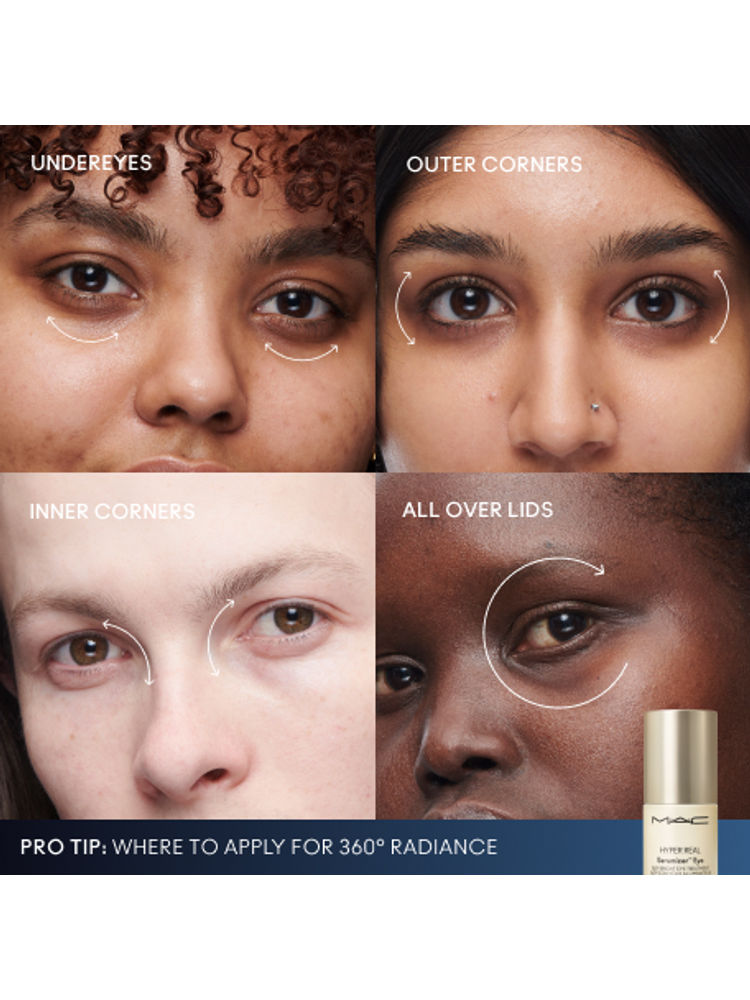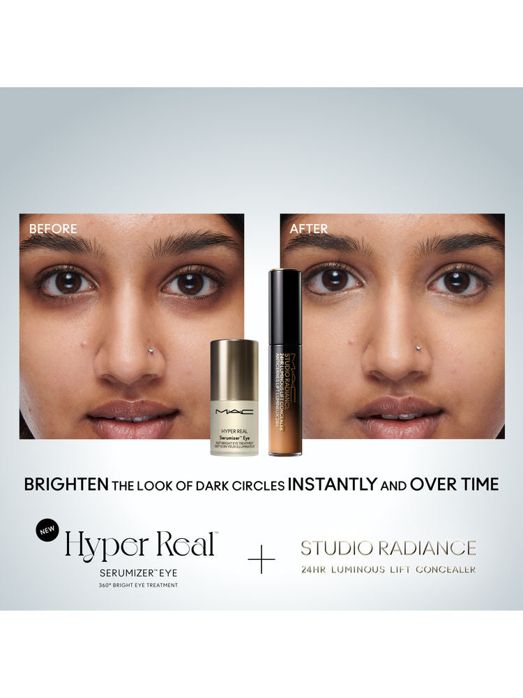 Brighten, smooth, and hydrate with the M.A.C Hyper Real Eye Serumizer. This next-generation serum + moisturizer hybrid targets puffiness, fine lines, and dark circles with a lightweight, fast-absorbing texture. Powered by Japanese Peony Extract and niacinamide, it revitalizes the delicate under-eye area with visible results. A skincare essential for refreshed, youthful-looking eyes—day and night.