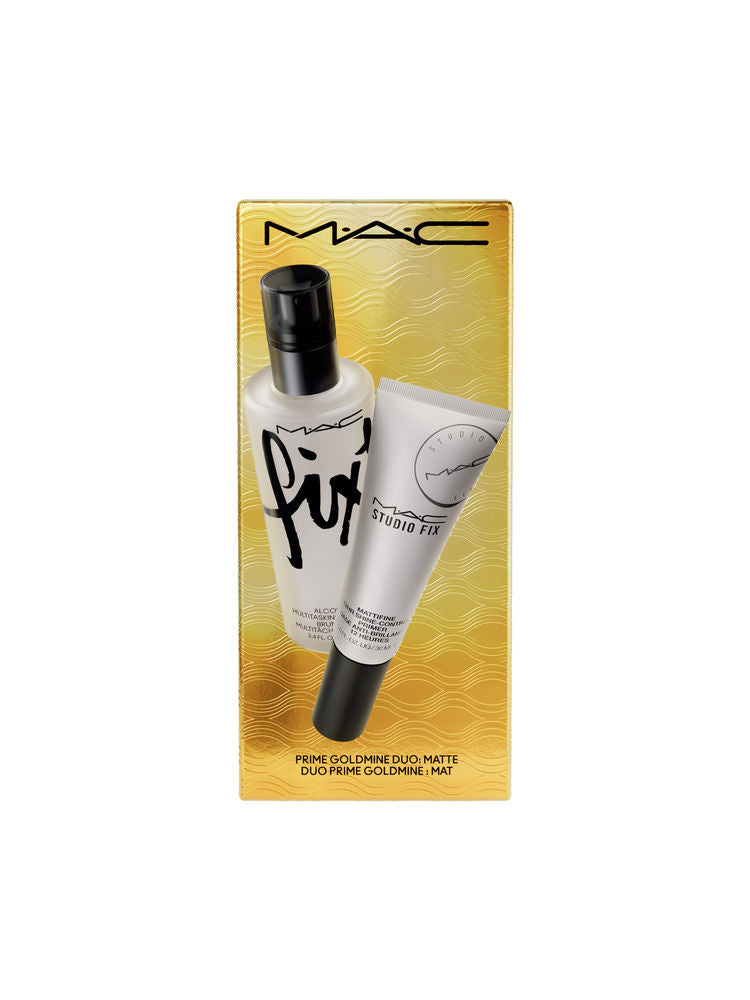 Prep and perfect your skin with the M.A.C Prime Goldmine Duo – Matte. This duo includes a matte-finish primer and oil-controlling formula that blurs pores, evens texture, and extends makeup wear for flawless, shine-free skin.