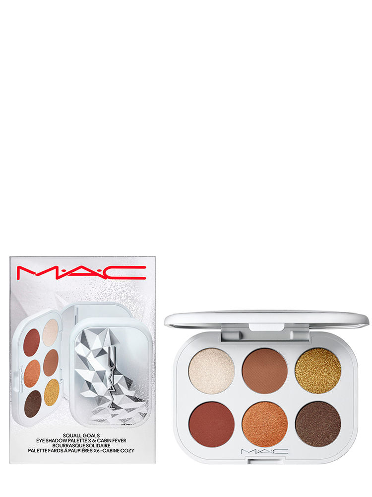 Create cozy, dramatic looks with M.A.C Squall Goals Palette – Cabin Fever. This 6-shade palette offers a mix of mattes and shimmers in warm, earthy tones inspired by winter cabins and fireside glam.