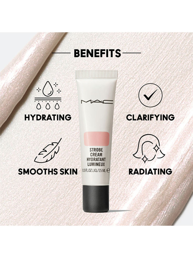Get an instant, dewy glow with the M.A.C Strobe Cream Mini – Pinklite, a must-have illuminating moisturizer and liquid highlighter in a travel-friendly 15 ml size. Infused with iridescent pink pearls, this cream revitalizes dull, tired skin while delivering a radiant, healthy-looking finish. It hydrates deeply with a nourishing blend of antioxidants and botanicals, leaving your skin soft, smooth, and glowing. Whether worn alone or layered with foundation, this strobe cream delivers a fresh, luminous finish—your shortcut to radiant, photo-ready skin anytime, anywhere.