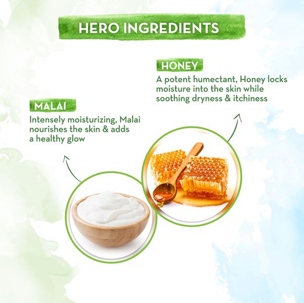 Honey as a natural humectant soothes dry skin & locks in moisture while Malai or Milk Cream boosts skin elasticity & adds a radiant glow. Lightweight & non-sticky in texture, it gets absorbed into the skin instantly. The result? Buttery soft skin that glows from within! And the Honey Malai Body Lotion is Made Safe Certified - which means, no toxins, just natural goodness for your skin.