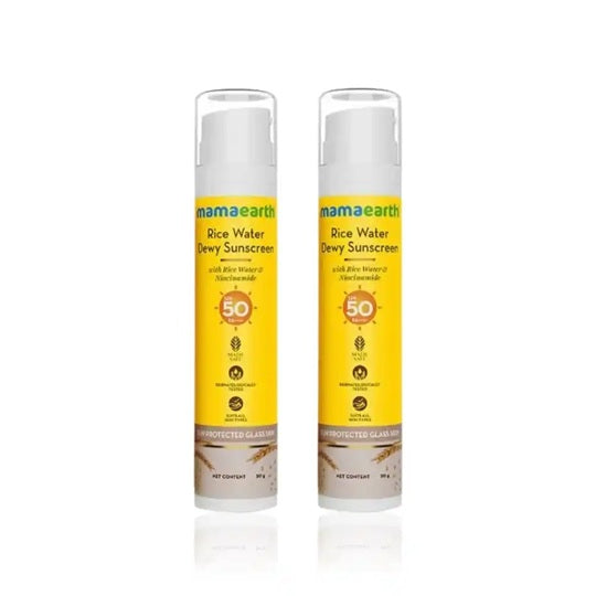 Mamaearth Rice Water Dewy Sunscreen offers advanced SPF50 and PA++++ protection, effectively shielding your skin from UVA, UVB, and tanning effects. Enriched with rice water and niacinamide, it promotes an even skin tone while delivering a natural glass skin glow without any white cast. This lightweight formula suits all skin types, ensuring broad-spectrum defense alongside hydration and radiant complexion enhancement.