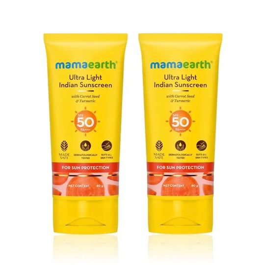 Mamaearth Ultra Light Indian Sunscreen offers advanced sun protection with SPF 50 PA+++, effectively shielding your skin from harmful UVA and UVB rays. Infused with natural ingredients like carrot seed and turmeric, it not only prevents sunburn and tanning but also nourishes and soothes the skin. Its lightweight, non-greasy formula absorbs quickly, making it ideal for daily use in the Indian climate. This sunscreen ensures enhanced skin defense while maintaining a fresh and comfortable feel throughout the day.