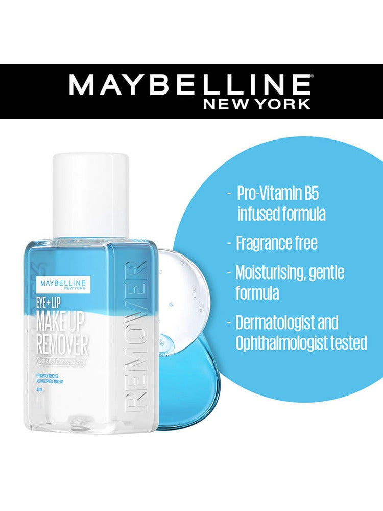 Enhance your beauty routine with the Maybelline New York Biphase Eye + Lip Makeup Remover for Waterproof Makeup, Fragrance-Free, 40ml(40ml). Designed for long-lasting wear and high performance, this product ensures a bold, professional finish every time. Whether you're aiming for a classic day look or a dramatic evening style, it's the perfect addition to your makeup kit.