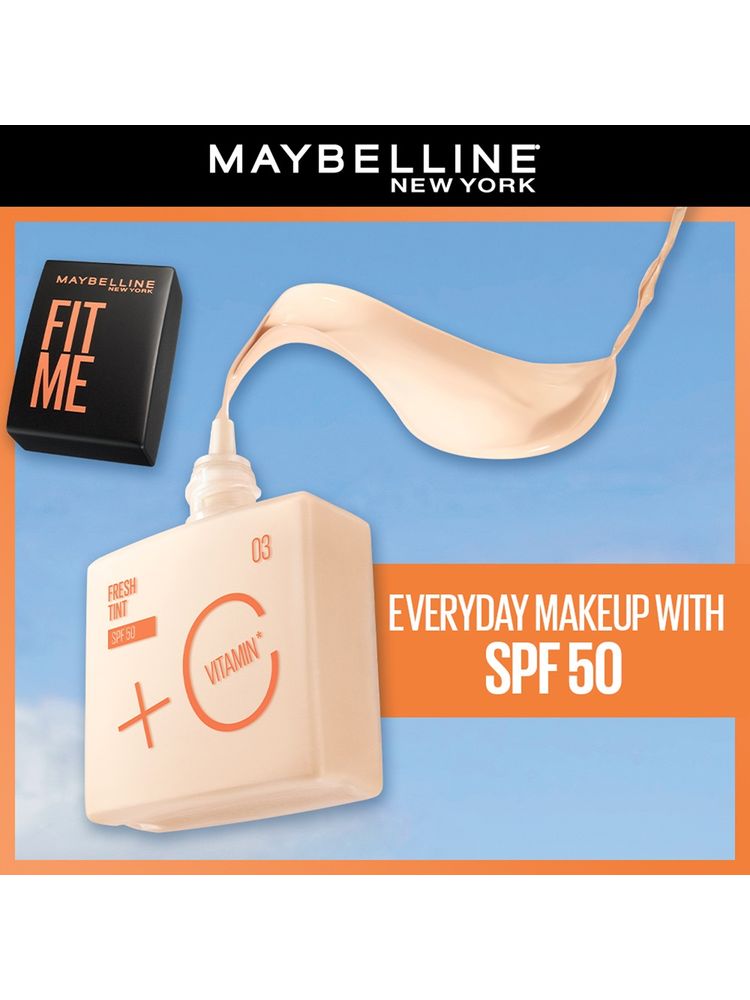 Maybelline New York Fit Me Fresh Tint, Lightweight, SPF 50 PA+++ & Vitamin C - Shade 05(30ml) Step 1: Apply the Fit Me Fresh Tint on clean, dry face. Step 2: Use your fingers or a foundation brush and spread the skin tint evenly on your face for natural coverage and skincare benefits. delivers intense pigment with a striking vinyl shine that lasts up to 16 hours. Designed for bold beauty lovers, this liquid lipstick stays put without smudging or fading throughout the day. The lightweight, no-budge formula keeps lips hydrated and vibrant from morning to night.