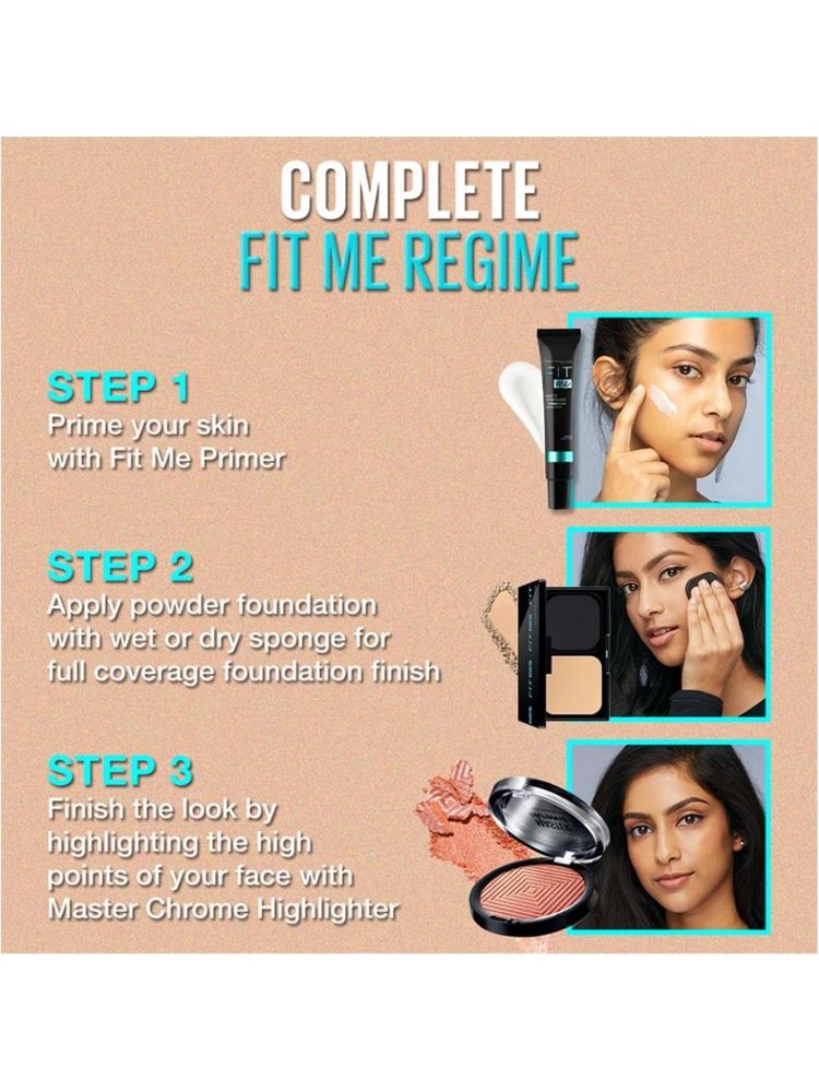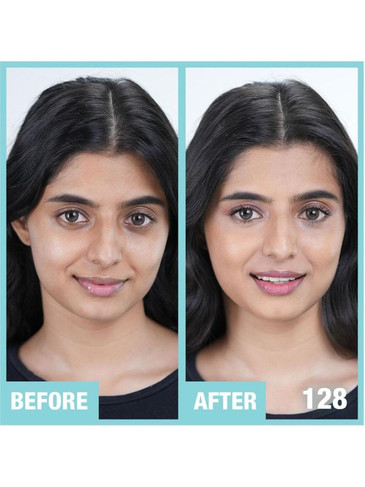 Maybelline New York Fit Me Ultimate Powder Foundation, 24 hr Oil Control + SPF 44 - Shade 128(9gm) Prime your skin with Fit Me Primer. Apply powder foundation with wet or dry sponge for full coverage foundation finish. Apply to the forehead, nose, cheeks, and chin, and blend all over using gentle downward strokes. Can be worn alone or on top of foundation. delivers intense pigment with a striking vinyl shine that lasts up to 16 hours. Designed for bold beauty lovers, this liquid lipstick stays put without smudging or fading throughout the day. The lightweight, no-budge formula keeps lips hydrated and vibrant from morning to night.