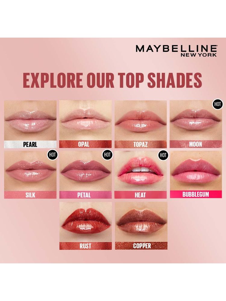 Maybelline New York Lifter Gloss - Petal, Tinted Lip Gloss With Hyaluronic Acid, Long-lasting, 5.4ml(5.4ml) Apply lip gloss with the XL Wand applicator in the center of your upper lip and follow the contours of your mouth. Glide the lip gloss across the entire bottom lip. delivers intense pigment with a striking vinyl shine that lasts up to 16 hours. Designed for bold beauty lovers, this liquid lipstick stays put without smudging or fading throughout the day. The lightweight, no-budge formula keeps lips hydrated and vibrant from morning to night.