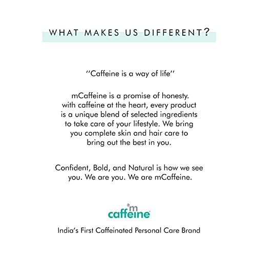 GOOD FOR YOU, GOOD FOR THE PLANET: mCaffeine is India's first caffeinated personal care brand focussed on getting you addicted to the good of coffee-infused self-care. Our products are gender-neutral and suitable for all skin & hair types making them ideal for anyone who wishes to enhance their personal care regimen. We are a 100% Vegan, PETA Certified, and Cruelty-free brand with Zero Plastic Footprint.