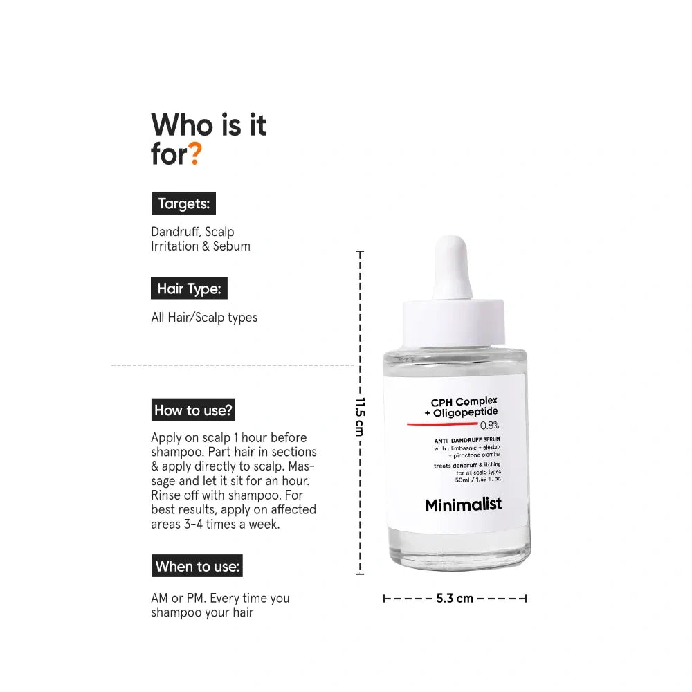 Experience advanced hair care with the Minimalist Anti Dandruff Shampoo and Hair Serum Duo. The 200 ml shampoo gently cleanses the scalp, effectively reducing dandruff while soothing irritation. Complemented by the 50 ml hair serum, it nourishes and strengthens hair strands, promoting healthier, well-managed hair. This expert-formulated combo targets scalp health and hair vitality for balanced, dandruff-free results.