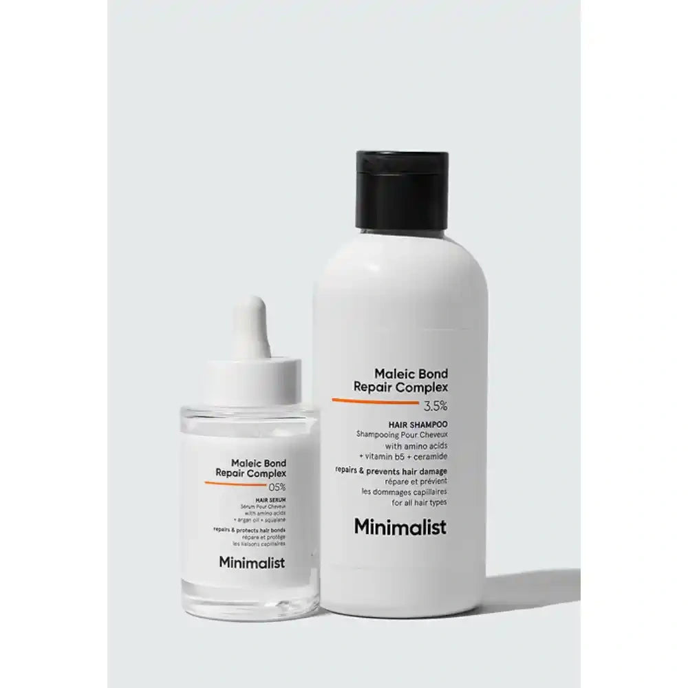 Minimalist Maleic Bond Repair Shampoo (Combo of 2) is expertly formulated to strengthen and restore hair by repairing damaged bonds. Enriched with maleic acid, it gently reinforces hair structure, reducing breakage and improving manageability. This shampoo combo offers a focused solution for damaged hair, promoting healthier, resilient strands with each wash. Ideal for those seeking professional-grade repair and maintenance in their hair care routine.