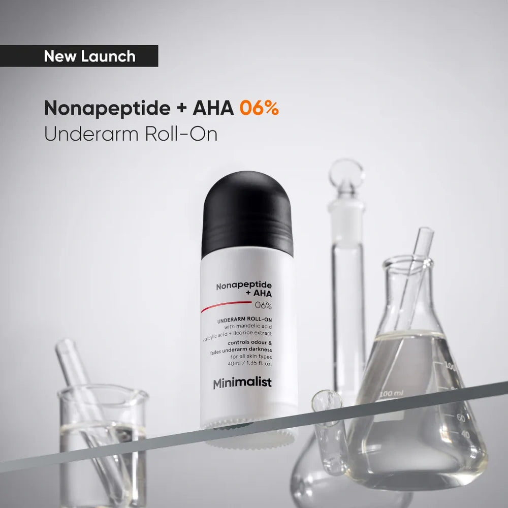 Minimalist Nonapeptide + AHA 06% Underarm Roll On is a targeted solution designed to gently exfoliate and brighten underarm skin. Formulated with a 6% concentration of AHA, it promotes cell renewal while nonapeptides help improve skin texture and firmness. This lightweight roll-on absorbs quickly, helping reduce discoloration and unevenness, leaving underarms smoother and revitalized with consistent use.