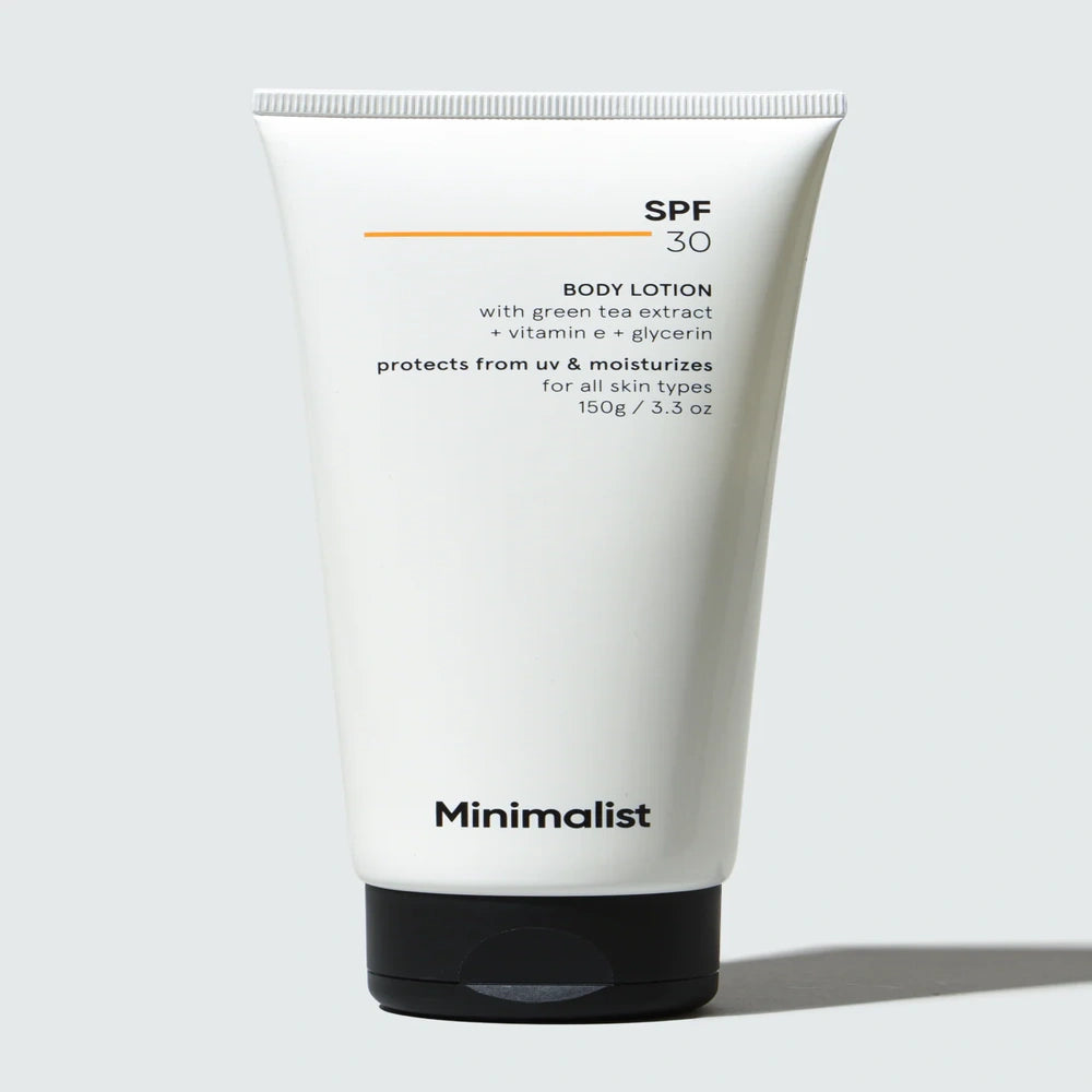 Minimalist SPF 30 Body Lotion combines effective sun protection with nourishing ingredients like Vitamin E, Glycerin, and Green Tea Extract. This lightweight formula shields your skin from harmful UV rays while keeping it hydrated and protected against environmental stress. Ideal for daily use, it supports skin health by providing antioxidant benefits and maintaining moisture balance.
