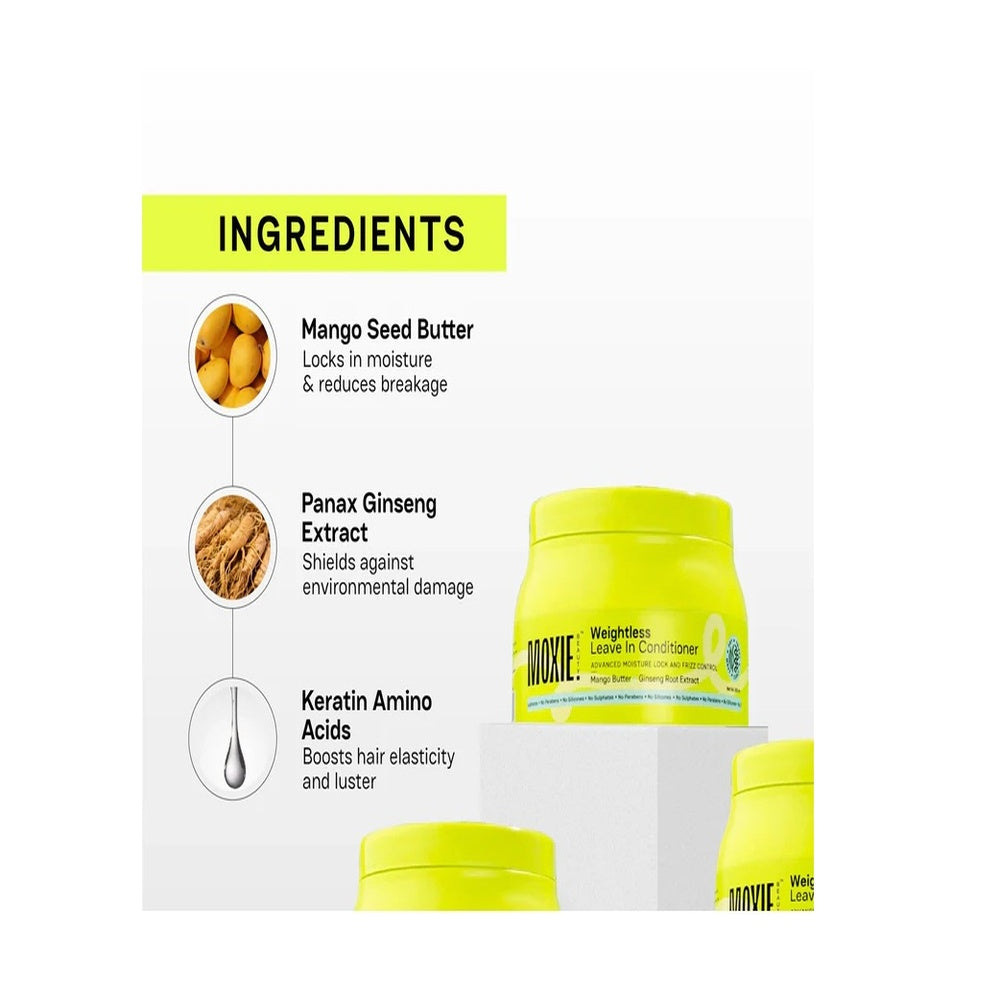 Moxie Beauty Weightless Leave in Conditioner (500ml) delivers deep hydration without weighing hair down. Formulated to detangle and smooth strands, it enhances manageability while maintaining natural volume. Ideal for all hair types, this lightweight conditioner protects against frizz and environmental stressors, leaving hair soft, shiny, and healthy-looking with a natural bounce. Its non-greasy formula ensures effortless styling and long-lasting moisture throughout the day.