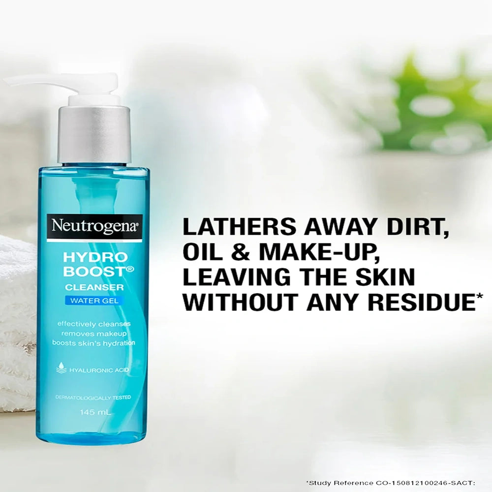 Neutrogena Hydro Boost Water Gel Cleanser (145ml) gently removes impurities while delivering lightweight hydration. Its water gel formula transforms into a refreshing lather, effectively cleansing without stripping moisture. Enriched with hyaluronic acid, it supports skin’s natural moisture barrier, leaving the complexion feeling soft, smooth, and revitalized. Ideal for daily use, it suits all skin types, including sensitive skin, ensuring a balanced and hydrated finish after each cleanse.