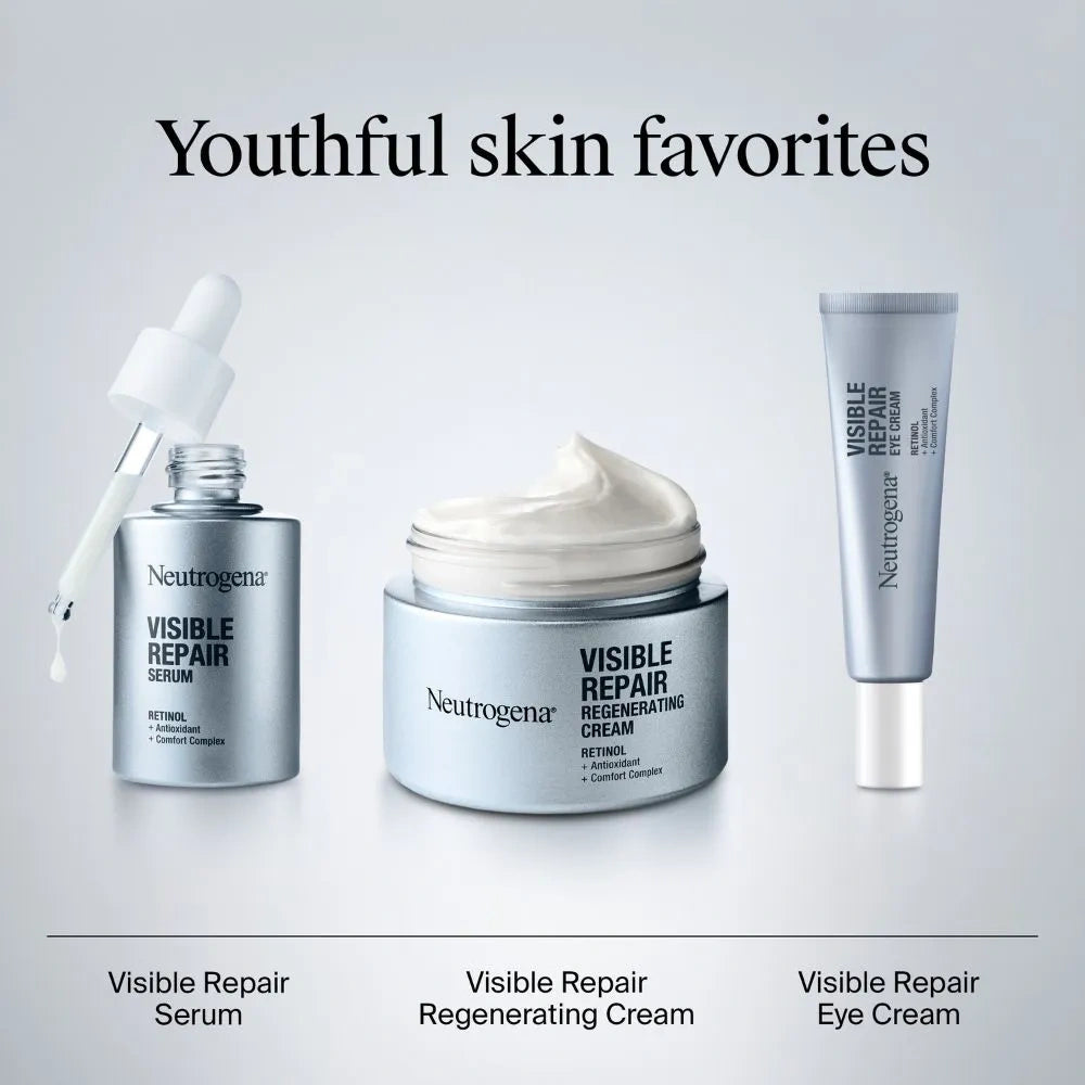 Neutrogena Visible Repair Regenerating Cream (50gm) is formulated to support skin's natural renewal process, promoting a visibly smoother and firmer complexion. This cream targets signs of aging by enhancing skin regeneration, helping to reduce the appearance of fine lines and uneven texture. Its lightweight, non-greasy formula absorbs quickly, delivering essential nutrients to restore skin’s vitality while improving overall clarity and resilience. Ideal for daily use, it supports healthier-looking skin with consistent application.