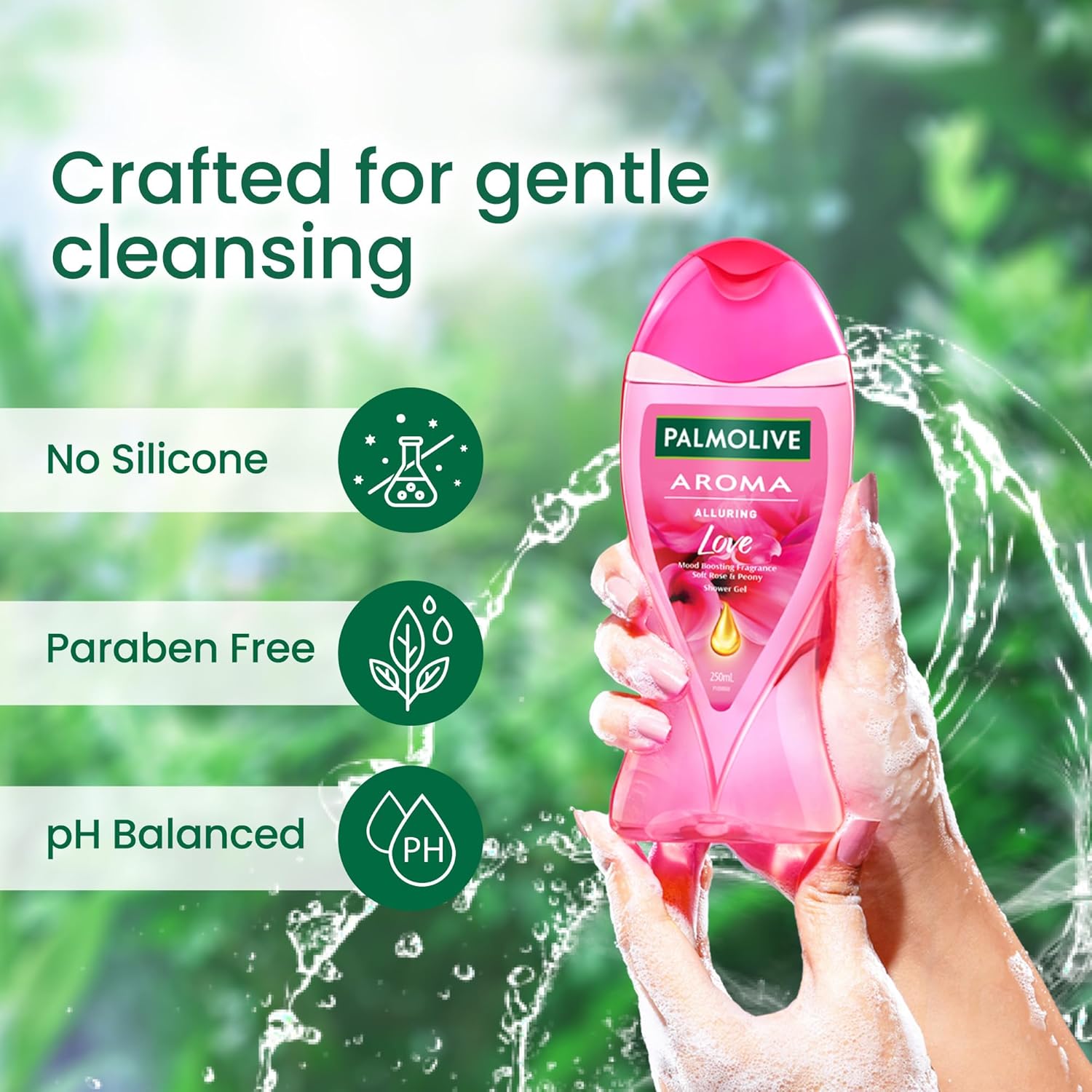100% NATURAL OILS & EXTRACTS: Our Palmolive Aroma Alluring Love body wash contains a perfect blend of Soft Rose and Peony extracts to provide you with the essence of a blissful shower moment any time! Free of Parabens & Silicones